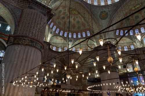 © oybekostanov, Obraz premium The inside of a large building with many lights hanging from the ceiling