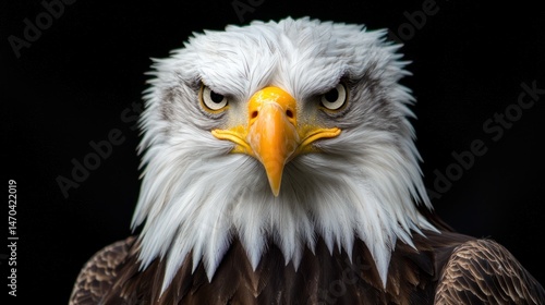 © Penatic Studio, Obraz premium The intense stare of a bald eagle with imposing feathers