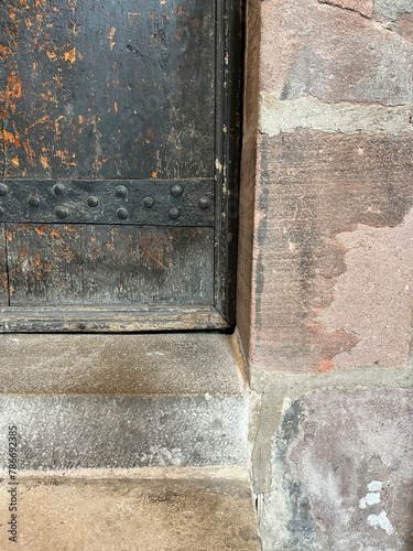 Naklejka premium The interior of the Church of St. Lorenz in Nuremberg, Germany. Part of the parish door with threshold, Bavaria, Germany