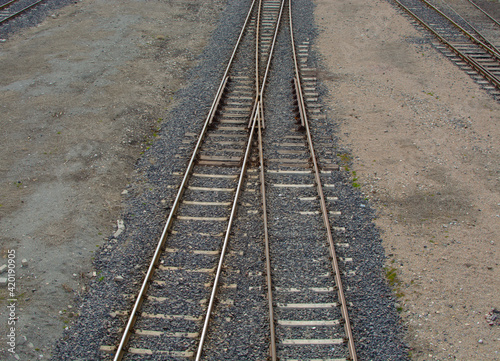 Fototapeta premium The intersection of two railway lines. Railway. Rails.