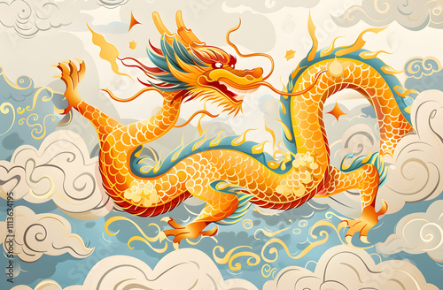Fototapeta premium The intricate artwork portrays the mighty Chinese dragon, embodying ancient Asian culture and mythical tales, capturing a blend of folklore and tradition in its design and symbolism