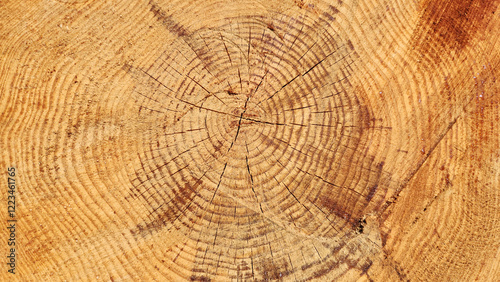 © cilicia, Naklejka premium The intricate pattern of concentric rings, a testament to the passage of time, is a visual representation of the tree's life story, etched into the very fiber of its being.