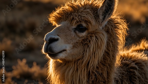 Obraz premium The intricate patterns of a llama's wool under the golden light of sunset...