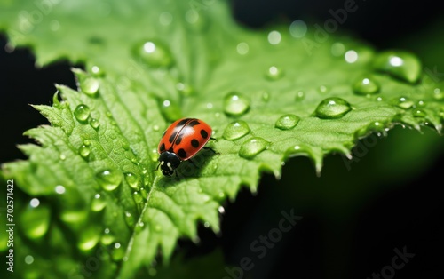Fototapeta premium The Intricate World, Ladybug on a Leaf Up Close