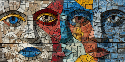 © inspiring , Obraz premium The is a mosaic of three faces, each with different colored eyes