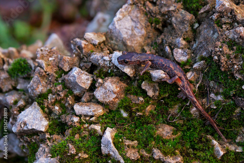 © Davide, Fototapeta premium The Italian Cave Salamander (Speleomantes italicus) is a rare amphibian native to Italy, known for its secretive nature and cave habitats. Ideal for wildlife, conservation, and nature projects.