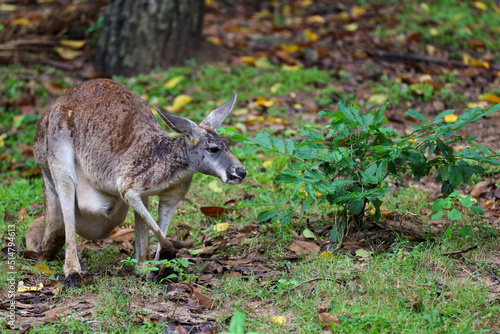 © pumppump, Fototapeta premium The kangaroo is stay and eat grass in garden