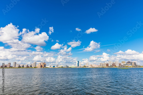 Naklejka premium the Kazanka river, on which the city is located, with comfortable embankments in Kazan, Russia