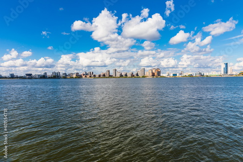 Naklejka premium the Kazanka river, on which the city is located, with comfortable embankments in Kazan, Russia