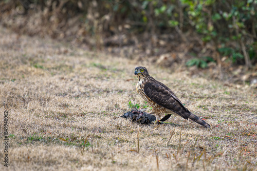 © jicheng, Obraz premium The kestrel stands on the ground, keeping watch over its prey.