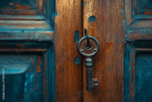 © 92ashrafsoomro, Fototapeta premium The key was inserted into the door of the house