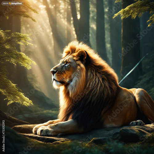 © Mohammad, Fototapeta premium The king of lion In A Fantasy Forest