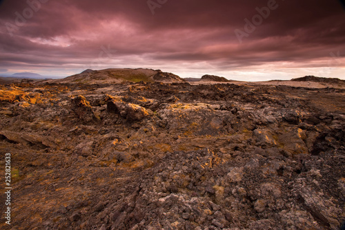 Fototapeta premium The Krafla is volcanic area in Iceland. Amazing lava field and dramatic sky with dark clouds.