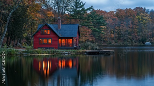 © Umri, Fototapeta premium The lakeside red house