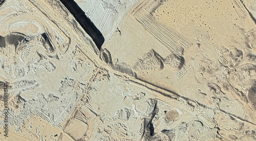 © ppicasso, Obraz premium The landscape of the sandy desert in Qatar from a bird's eye view