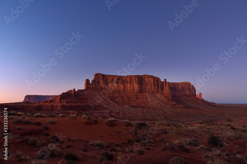 © Artem, Fototapeta premium The last rays of the setting sun illuminate iconic view of Monument Valley on the border between Arizona and Utah, USA