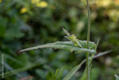 Naklejka premium The leaves are dewy in the morning
