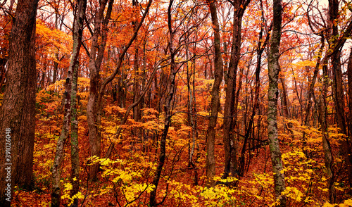 © ISAMU, Fototapeta premium The leaves turn yellow. The leaves turn red. Autumn leaves fall