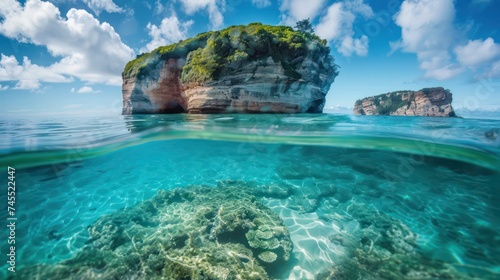 Fototapeta premium The lens captures a scene where transparent seawater occupies half of the...
