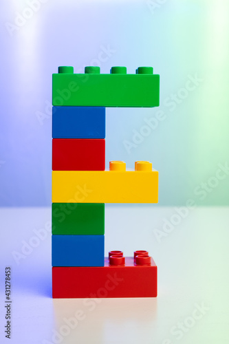 © Rouven, Fototapeta premium the letter E built from toy brick letters