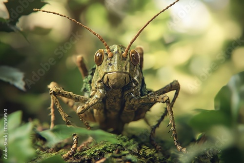 © MUdaylah, Fototapeta premium The life of a grasshopper in the wild, appears with a real shape and face
