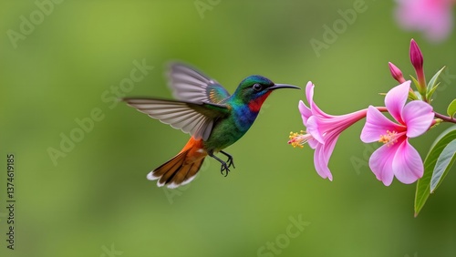 © fast high definition, Fototapeta premium The light dance of hummingbirds and flowers