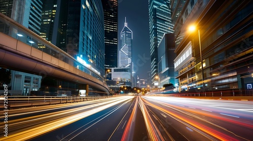© Generative AI, Fototapeta premium the light trails on the modern building background in city : Generative AI