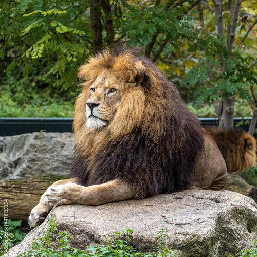 Naklejka premium The lion, Panthera leo is one of the four big cats in the genus Panthera