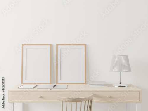 Obraz premium The living room is decorated with a storage table. Chair and picture frame