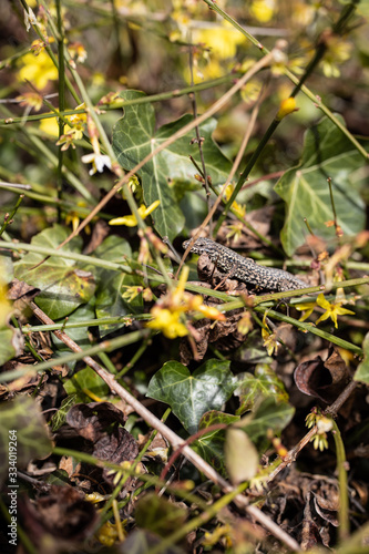 © Lisa Bauer, Fototapeta premium The lizard is hiding in the grass.