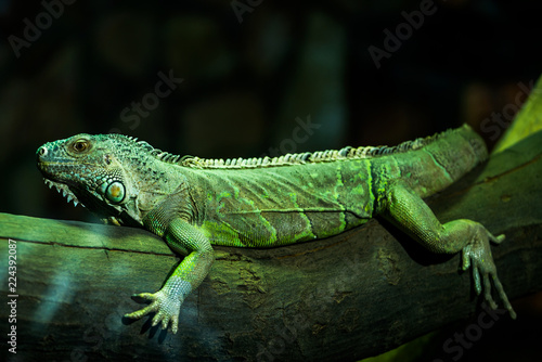 © robertuzhbt89, Fototapeta premium The lizard lies on a tree