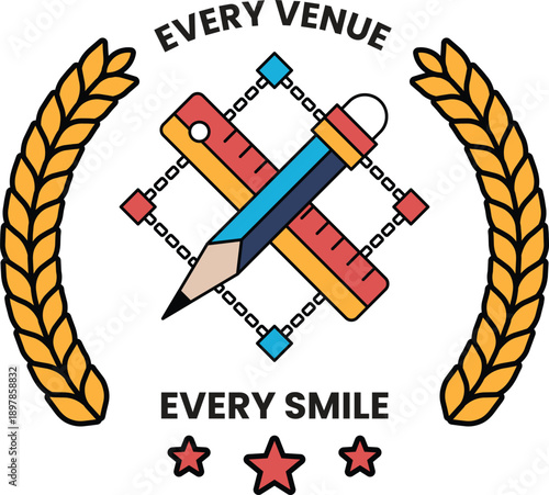© toonsteb, Fototapeta premium The logo for Every Venue Every Smile is a stylized pencil and ruler