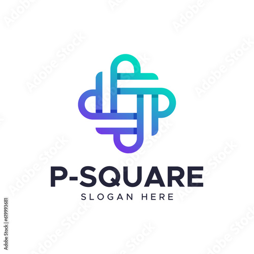 Obraz premium The logo monogram forms a rounded P. It is suitable for use for technology logos.