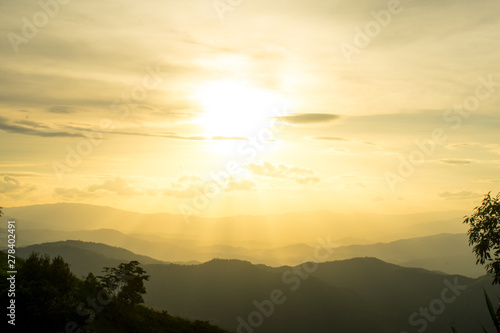 Obraz premium The longitudinal mountains and the setting sun and the forest on Doi Tung