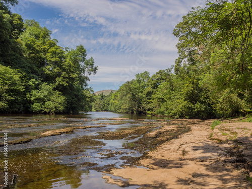 Obraz premium The Lower Falls, Aysgarth waterfalls on beautiful summers day at Aysgarth,...