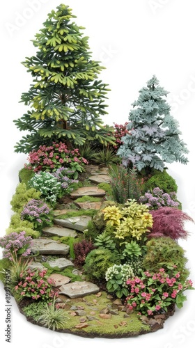 Fototapeta premium The lush green golf course features manicured grass, diverse plants, and...