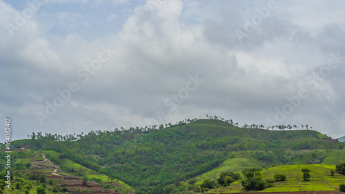 Naklejka premium The Lush Green Mountains and Beautiful Muddy Lake of Panshet, Maharashtra, India