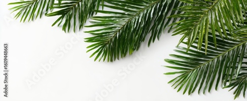 Fototapeta premium The Lush Green Palm Leaves Against a Bright White Background