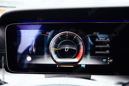 © sarymsakov.com, Fototapeta premium The luxury car dashboard. The Modern technology
