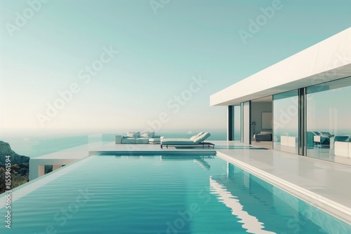 © Milos, Fototapeta premium The luxury home boasts a stunning poolside area where modern design meets contemporary elegance, creating a serene oasis
