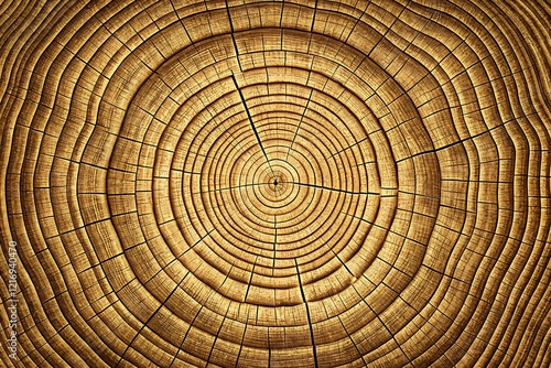 Naklejka premium The macro texture of the cut wooden log reveals the tree's age through its concentric annual rings