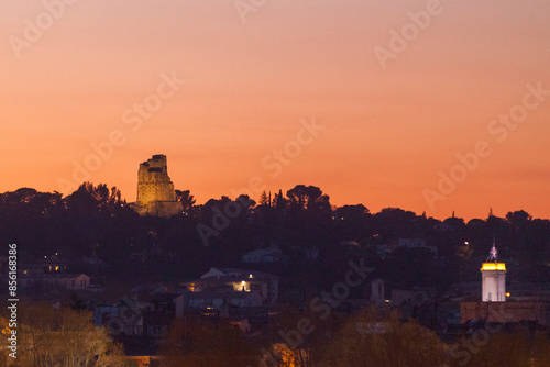 © BreizhAtao, Fototapeta premium The Magne tower overlooking the city of Nimes at sunset