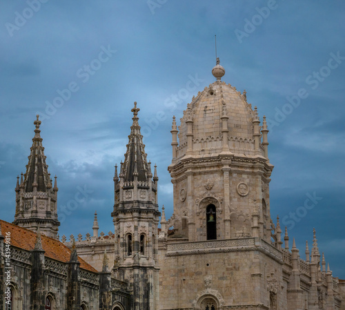 Naklejka premium The magnificent spires and dome of the Jerónimos Monastery in Belém, Lisbon...