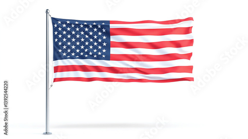 © Jani's Stocks, Fototapeta premium The majestic American flag waves in the wind against a backdrop of bright skies, capturing the essence of patriotism.