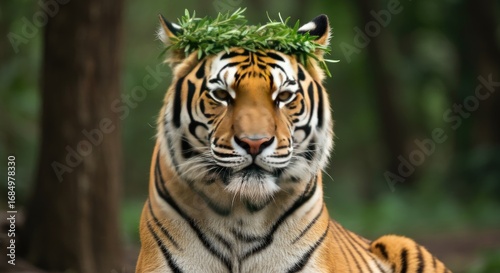 Fototapeta premium The Majestic Bengal Tiger Embraces Nature's Crown with Elegance and Serenity...