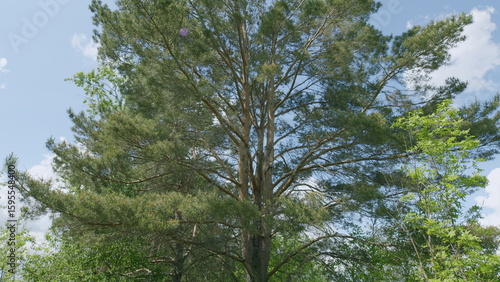 Fototapeta premium The Majestic Tree Stands Proudly Under the Bright Blue Open Skies That Are...