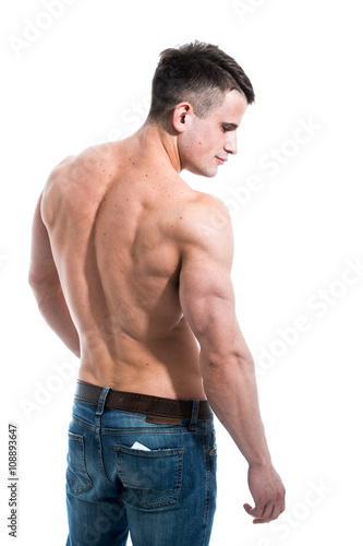 © romankosolapov, Fototapeta premium The male back isolated on white background.