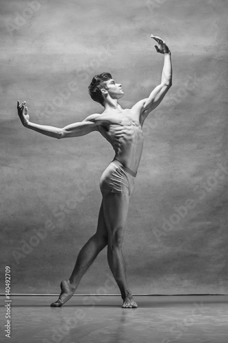 © master1305, Obraz premium The male ballet dancer posing over gray background