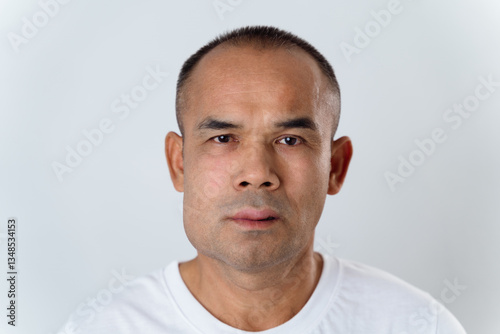 © Suriyawut, Fototapeta premium The man has facial swelling due to an allergic reaction to triggers such as insect bites stings.