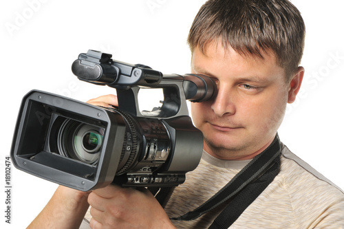 © Olga Galushko, Fototapeta premium The man with a videocamera